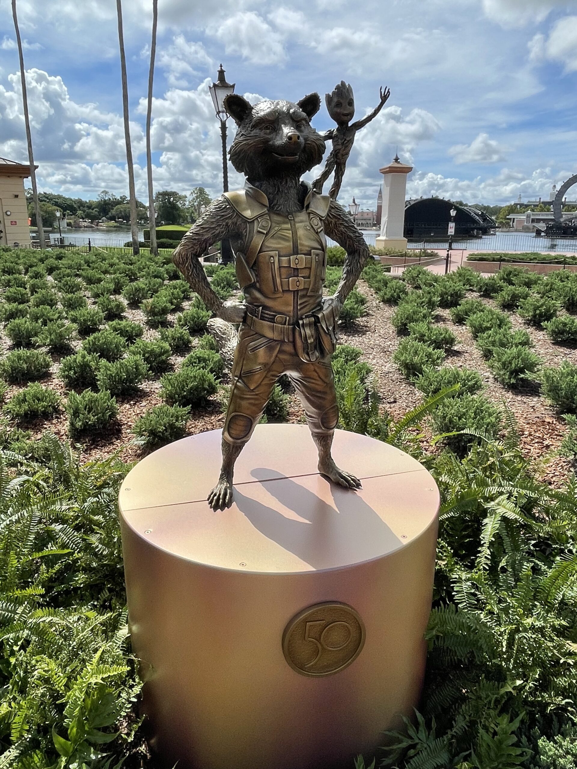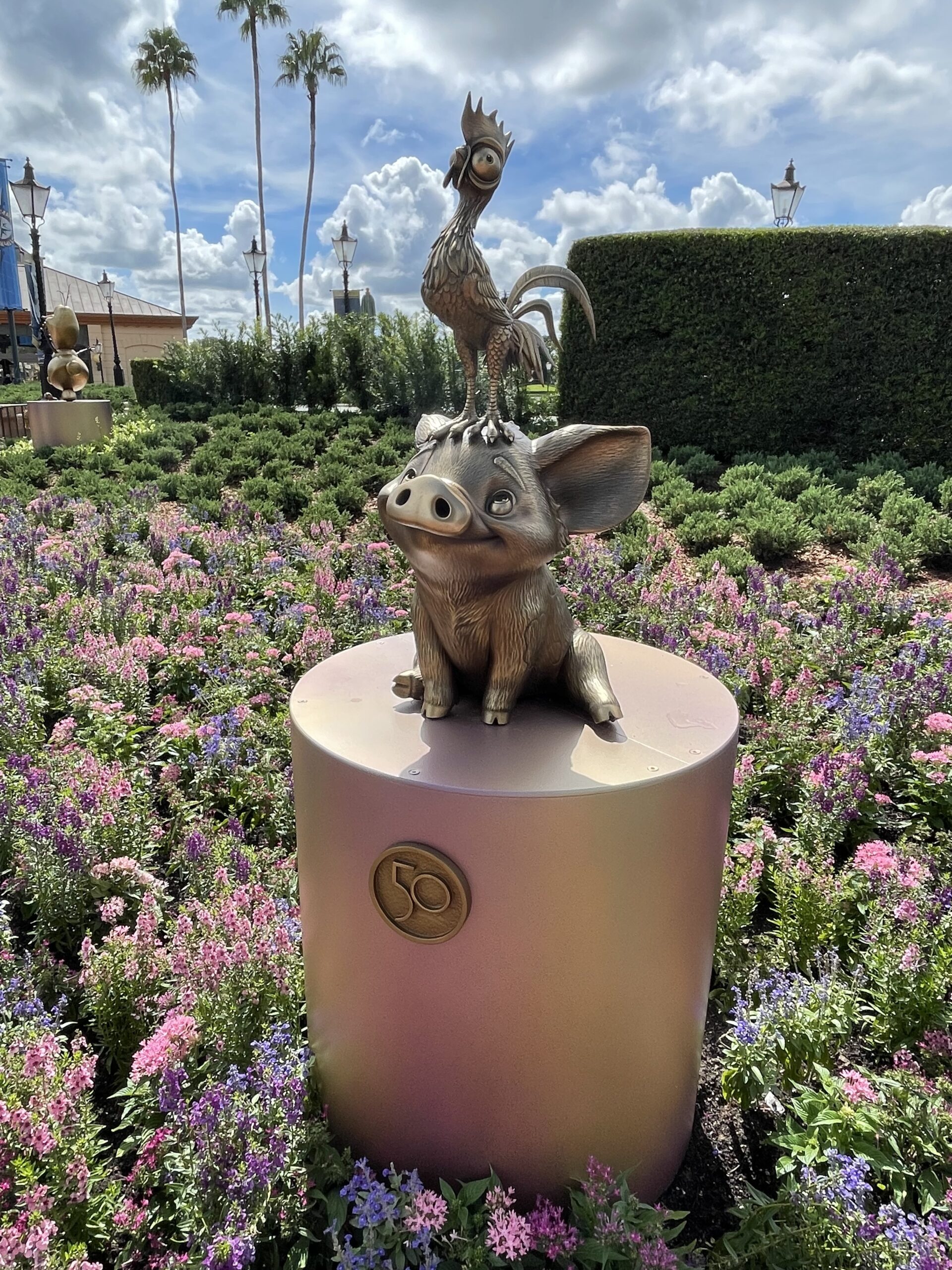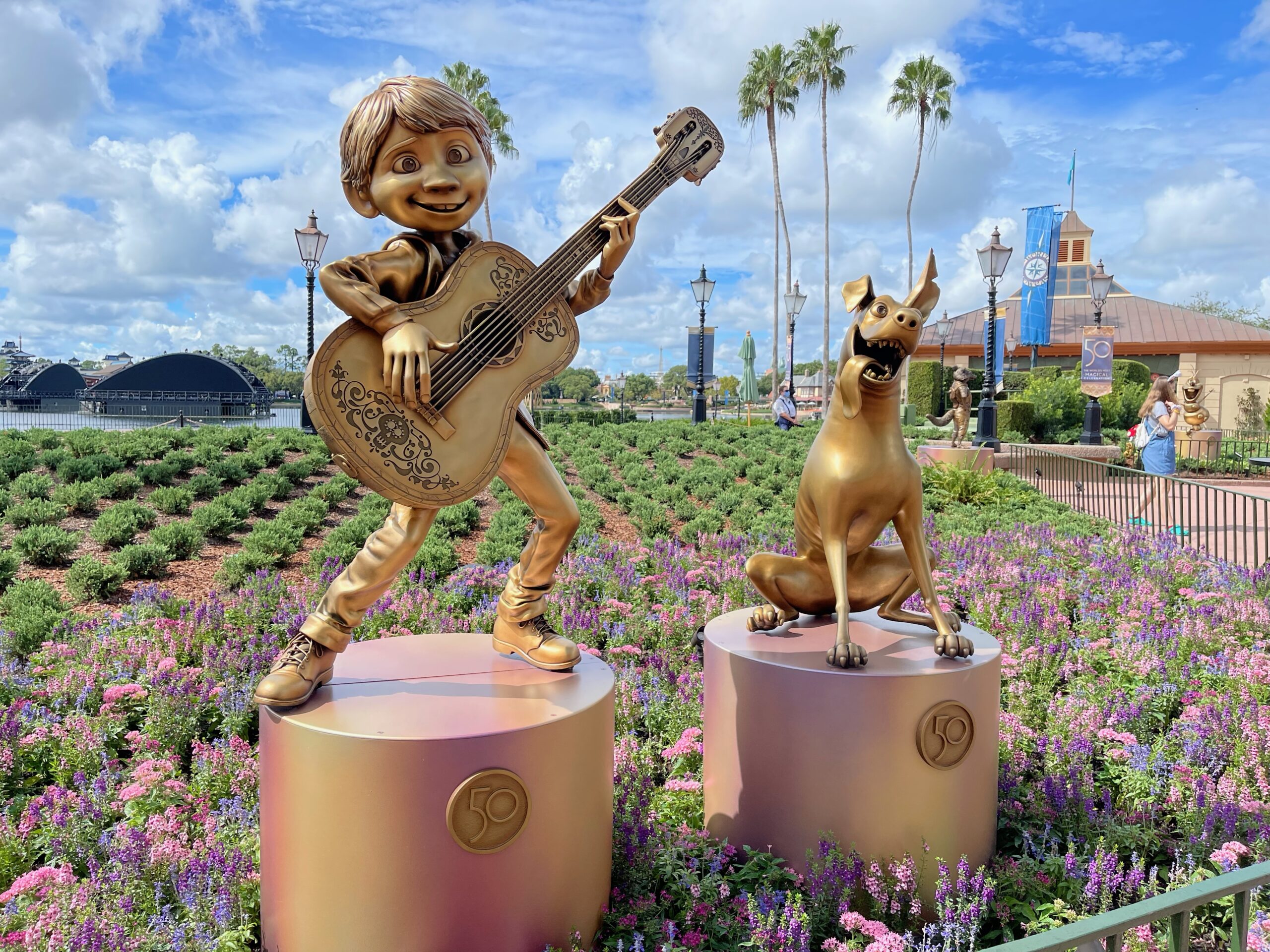 The statues on display as of this weekend include Pua & Heihe, Olaf (and a hidden Pascal), Rocket & Groot, Miguel & Dante, and the most essential character in all of EPCOT: Figment!