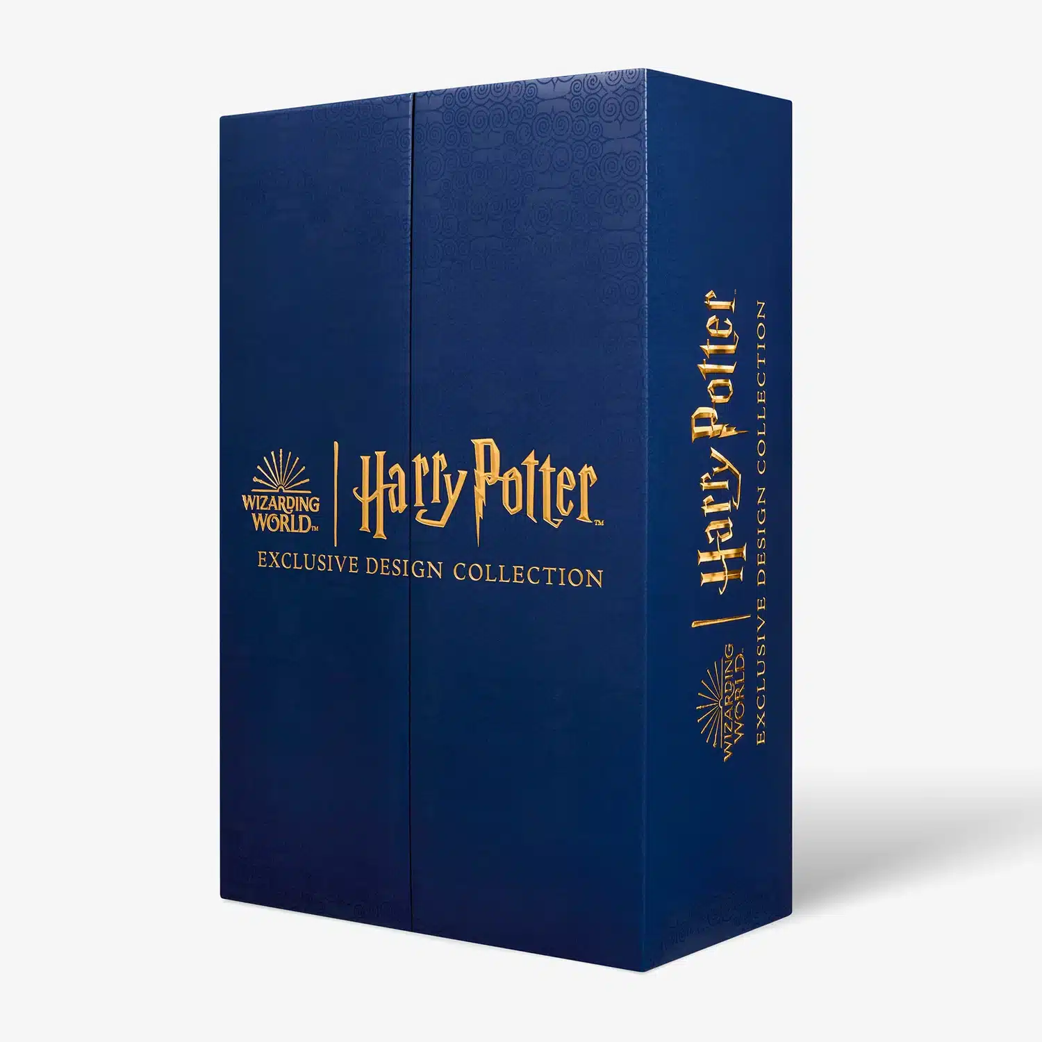 “Relive the magic of Hogwarts and celebrate the 100th anniversary of Warner Bros. with the Harry Potter Design Collection. The third iconic character in the series, Albus Dumbledore, is regarded as the greatest wizard of modern times. Dumbledore has Marvolo Gaunt’s cursed ring holding the Resurrection Stone on his finger and is wearing his signature robe with embroidered details, flat hat, and his famous half-moon glasses.“