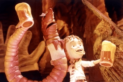 But Rickman did have a couple dips in the Disney pool, playing the blue caterpillar Absolem in Tim Burton’s Alice in Wonderland remakes, and voicing Marvin the Paranoid Android in Touchstone’s The Hitchhiker’s Guide to the Galaxy.