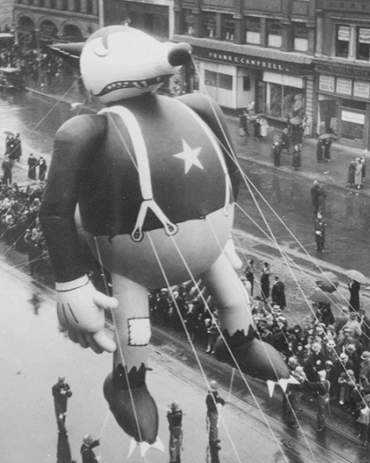 Mickey first made his way through Manhattan in 1934. During his inaugural run, Mickey was joined by several Disney friends, including Pluto, Horace Horsecollar, Practical Pig (one of the Three Little Pigs), and the Big Bad Wolf.