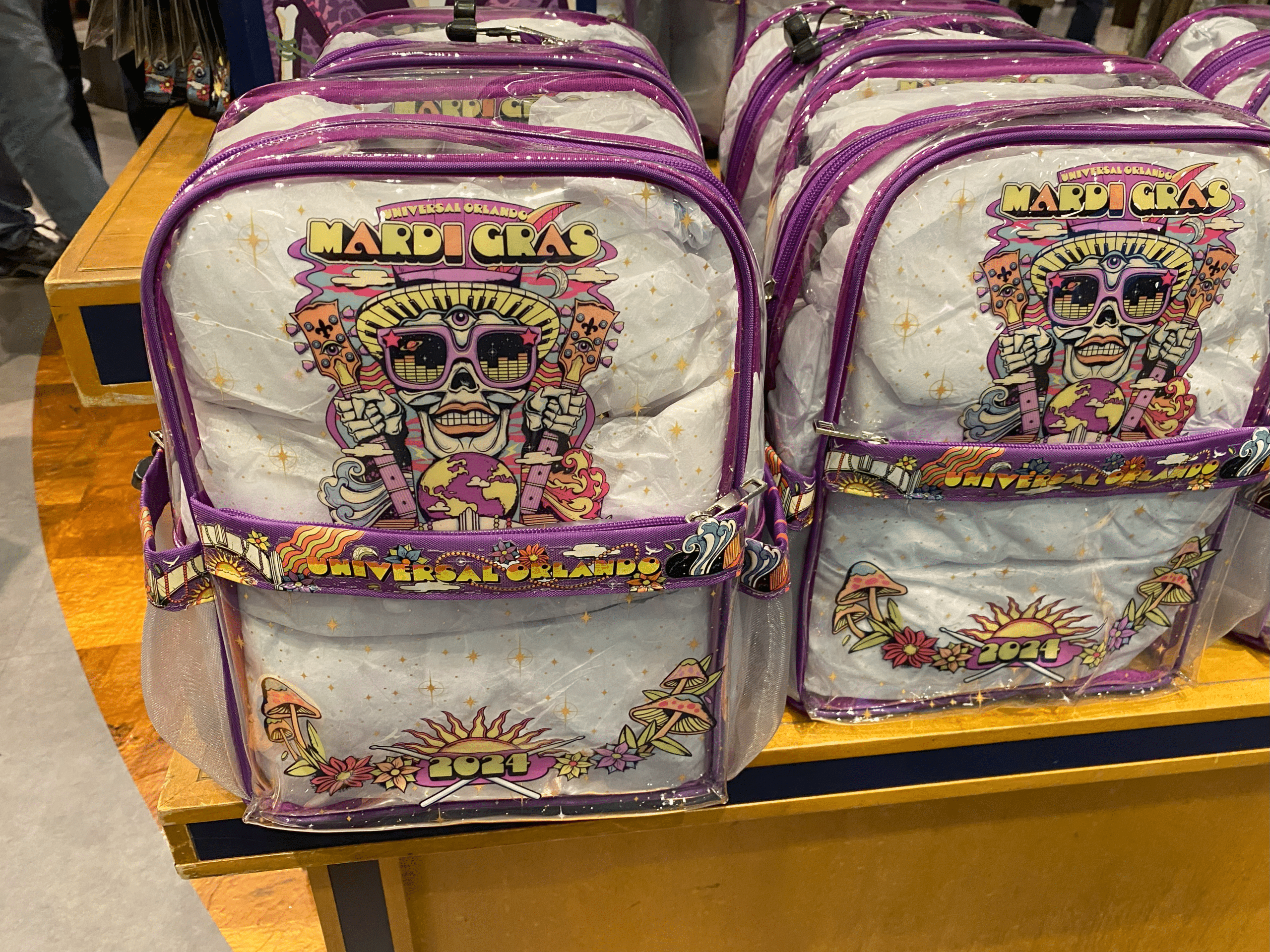 The designs for 2024’s Mardi Gras are also quite appealing, especially for horror fans. Nearly every shirt contains a skeleton worked into the design. Although, I wish the colors on the transparent backpacks popped a bit more.