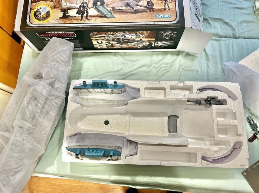 Images have surfaced showing off what may be the finalized and shipped version of the Razor Crest from HasLabs—first reported by Rebel Scum via Instagram. The handful of photos depicts the ship itself on the included stand, the box, packing materials, the cockpit, and some of the extras Hasbro included.