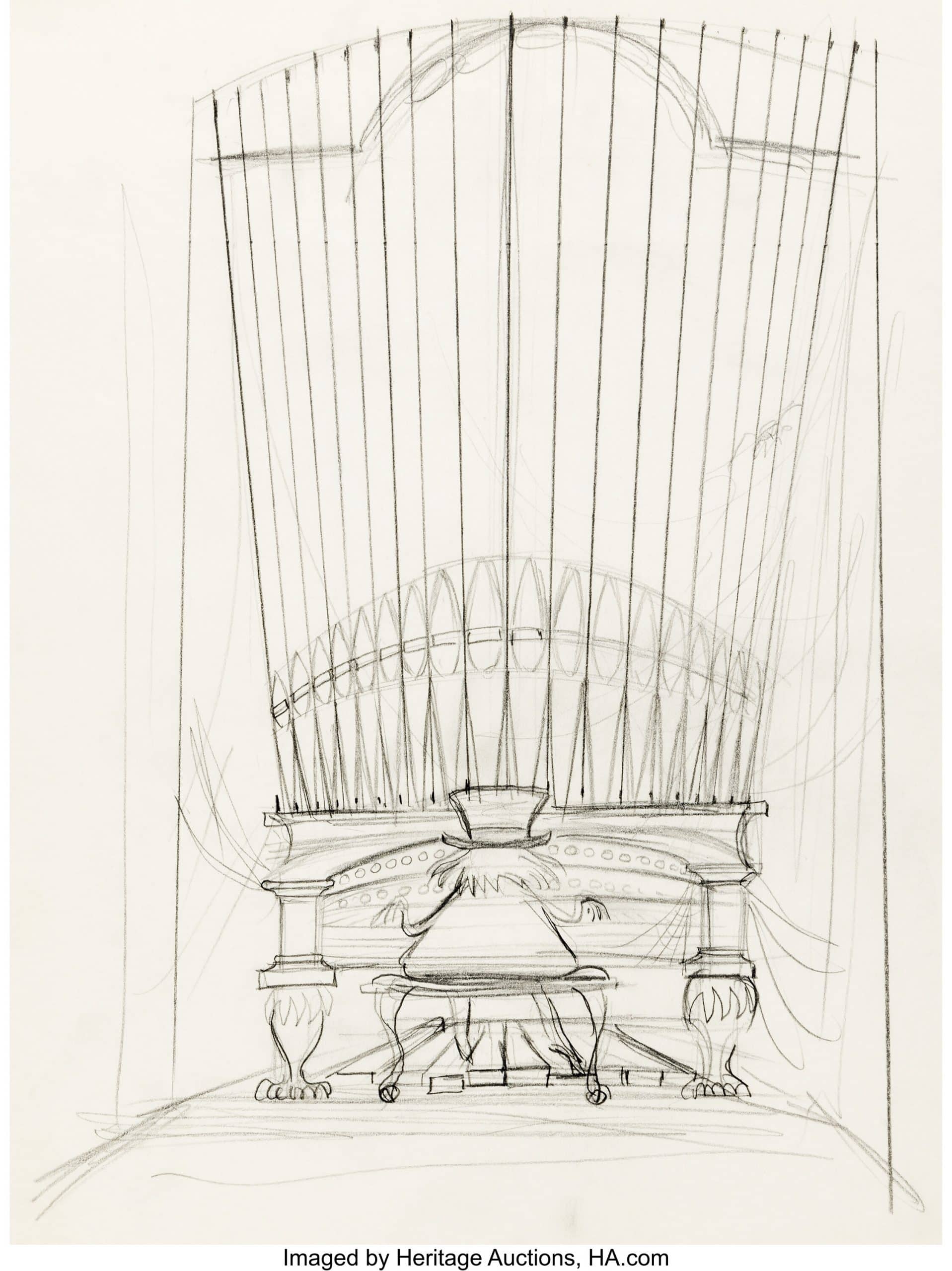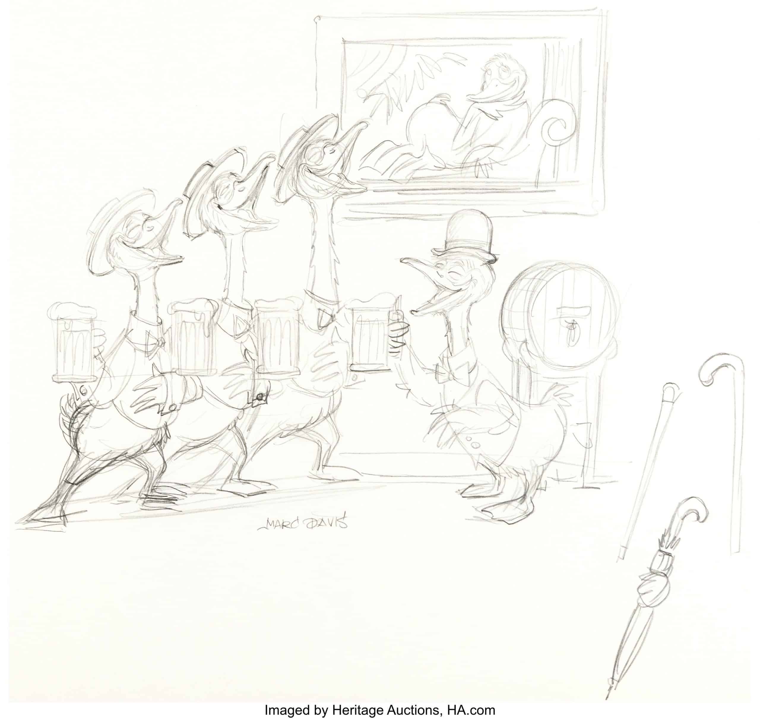 My favorites from this auction include concept art for The Haunted Mansion. Marc Davis created so many exciting scenes that sadly didn’t make it into the final design: