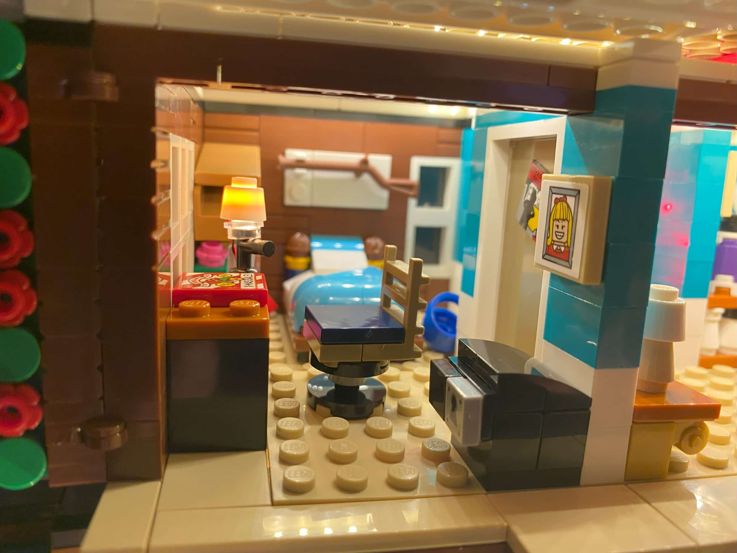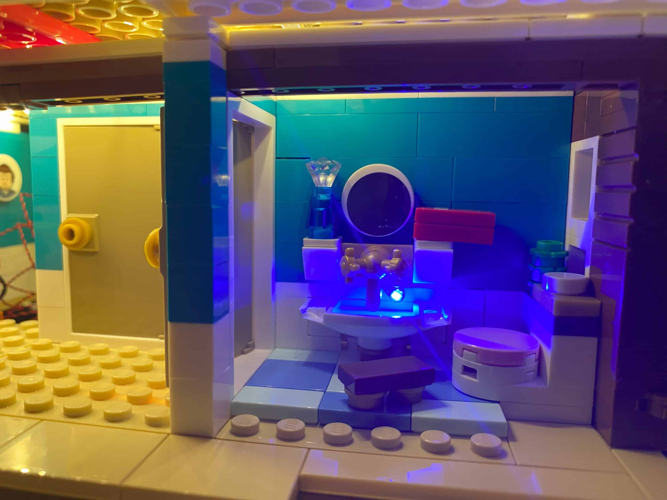 Some wires will be noticeable and are hard to hide. The best option in these cases is to find an obscured corner of the building and run most of the cables down that way, like in the master bedroom. Once lit up, though, this thing is a beauty.