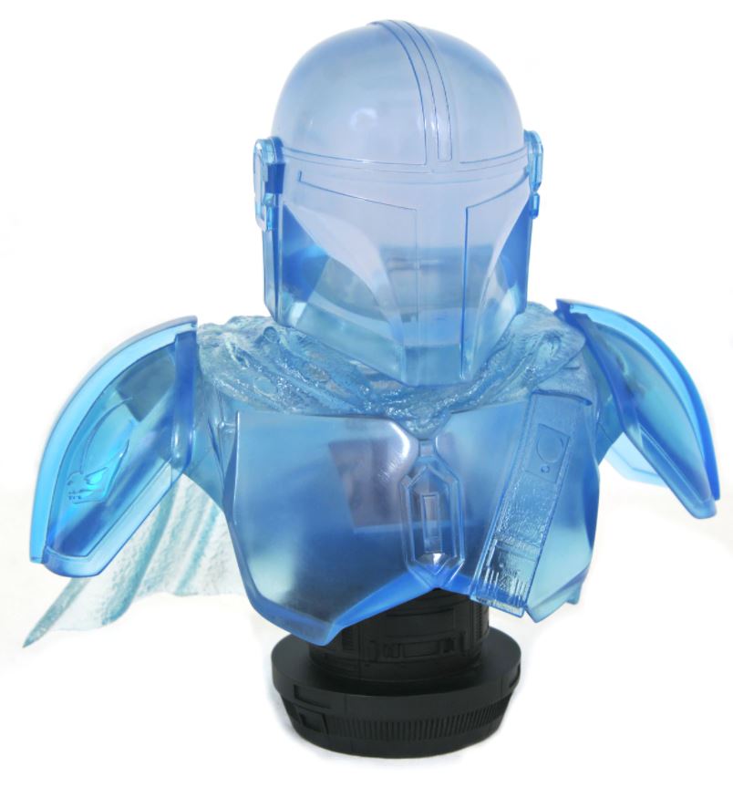 Incoming transmission! You have something the Mandalorian wants, and he’s not going to stop until he gets it back! This approximately 10-inch bust captures Din Djarin in clear resin, with a light-up feature to simulate a hologram message! Limited to only 1,000 pieces, it comes packaged in a full-color box with a numbered certificate of authenticity. Designed by Joe Allard, sculpted by Rocco Tartamella!