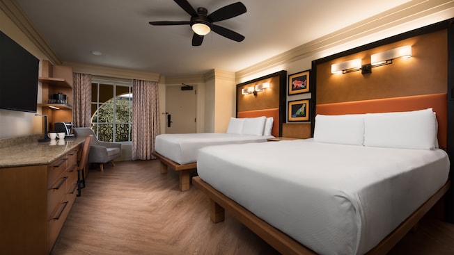 Disney’s Coronado Springs Resort is currently configured with over 2050 guest rooms, as well as 65 suites. Additionally, this resort has special Club Level rooms and Guests choosing Club Level accommodations at the Chronos Club receive personalized concierge service and lounge with continental breakfast, midday snacks and evening wine, hors d’oeuvres, cordials and desserts. This resort also serves as one of Disney’s 5 large convention centers.