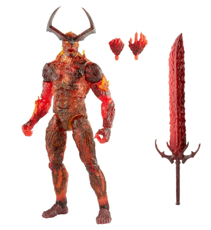 Surtur will be joining the Marvel Legends line of action figures this summer. Oddly enough, he doesn’t come with a tiny Hulk, or Thor, or Asgard. He does come with a giant sword and an extra set of hands.