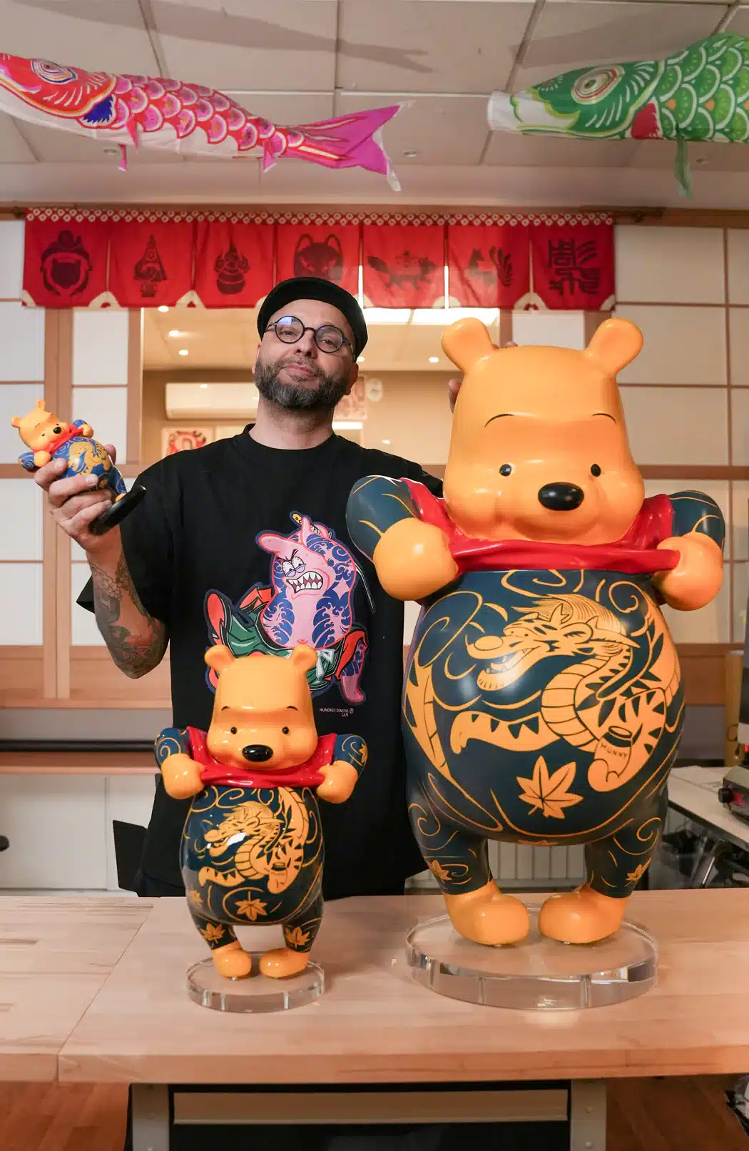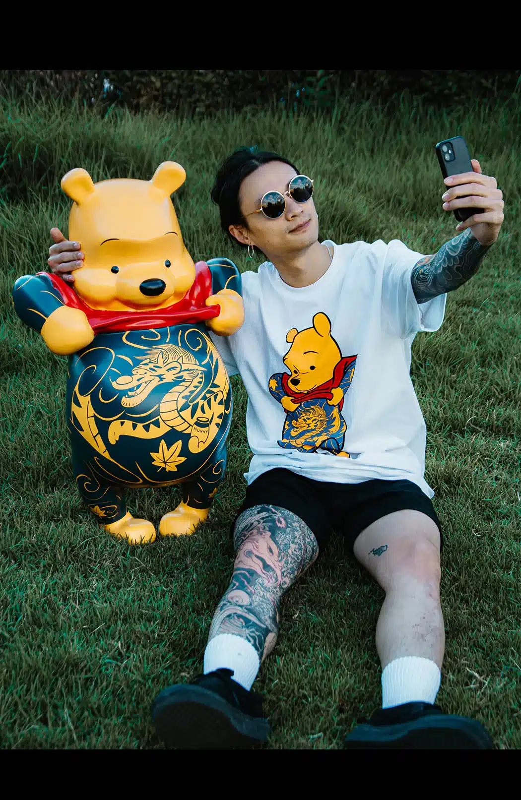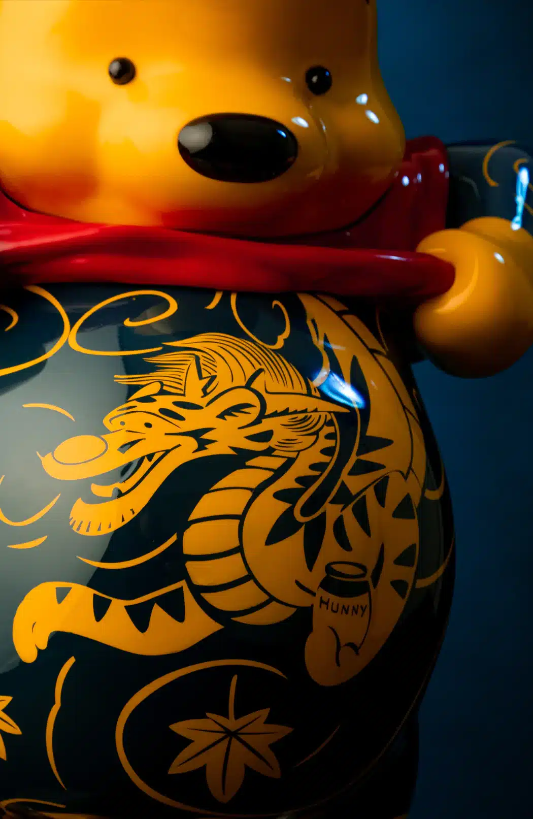 “Tatpooh, 彫物 プーさん, created by JEE Saya and inspired by Japanese Irezumi culture illustrates the rite of passage from childhood to adulthood and the construction of the personality. Pooh held our hand when we set off on our journey, and although she seemed to fade away, Tatpooh proudly shows us how she is still with us now, sharing our love of art and our need for individual expression.”