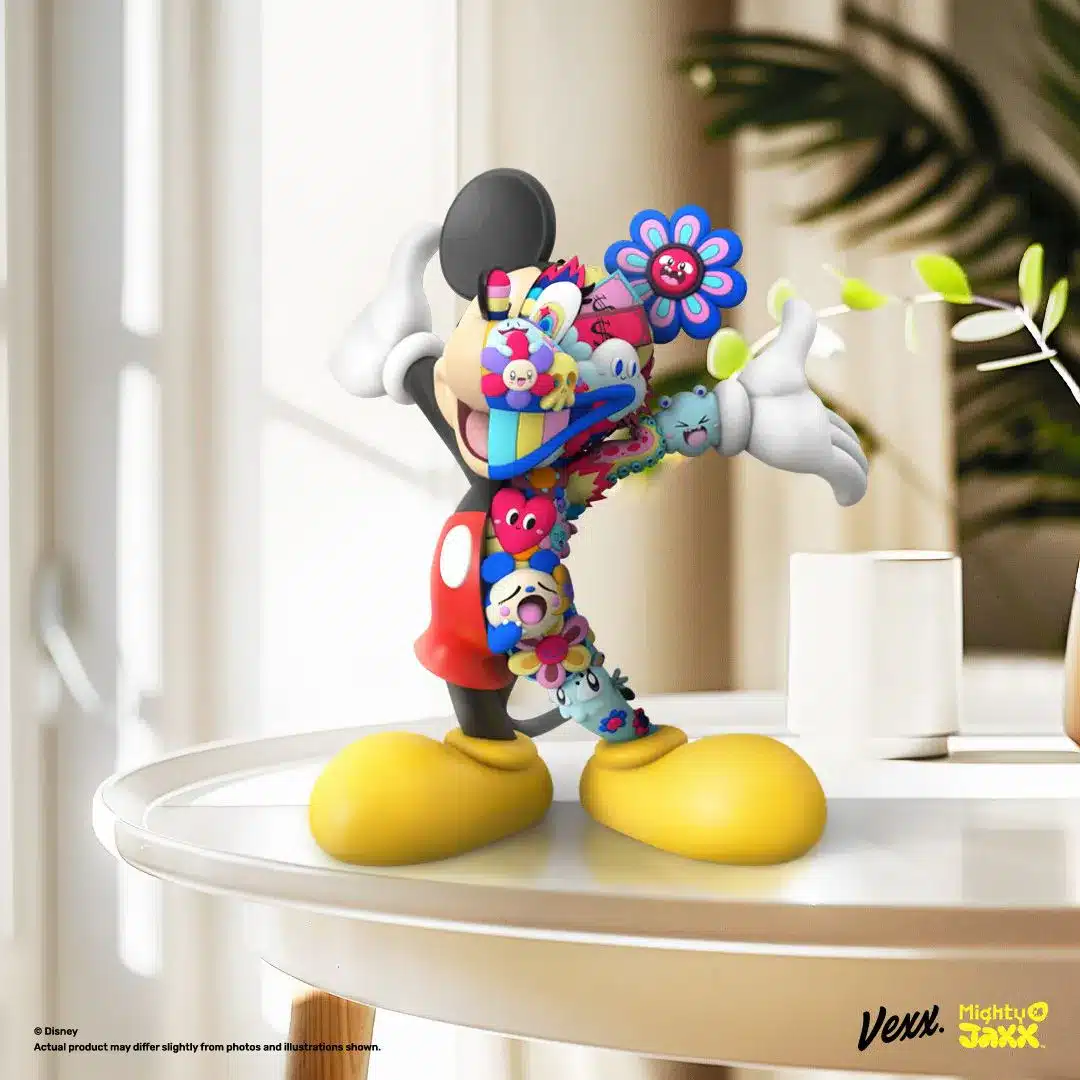 “Reimagined through his colorful lens, Mickey Mouse by Vexx is as bold and captivating as it is nostalgic. Mickey Mouse receives a makeover with a vibrant playful flair, elevating the beloved character’s timeless charm to new heights.“