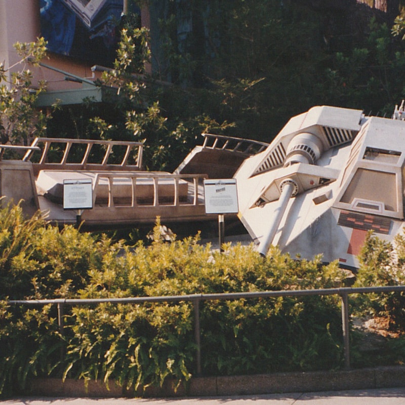 As a mega Star Wars fan (before the dark times of the Disney era), MGM was the place to get up close and personal with screen-used props from the Original Trilogy. You could see speeder bikes from Return of the Jedi in an exhibit and the Dejarik board from A New Hope. By Star Tours, an original snow speeder and skiff were positioned in front of the AT-AT.